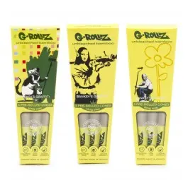 Bibułki skręcone G-Rollz Banksy Bamboo KS wyróżniają się stylowym designem inspirowanym pracami Banksy'ego. Wykonane z naturalnych składników, w tym bambusa, zapewniają autentyczny i intensywny smak, co sprawia, że każda sesja palenia staje się wyjątkowym doświadczeniem.