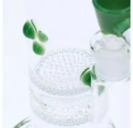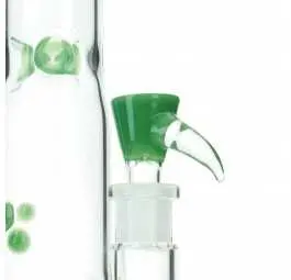Gruby szlif:W bongu zamontowany jest ręcznie formowany gruby szlif z 4 mm szkła. Jest to ogromna różnica w stosunku do cieńszych szlifów. Szlif to najbardziej narażona na uszkodzenia cześć bonga, dlatego dokładamy wszelkich starań by był on jak najgrubszy i solidnie połączony z dzbanem. Elementy artystyczne:- Unikatowy Cybuch: dedykowany, mega gruby zielony cybuch naszej polskiej produkcji - Zdobienia: dodatki z mleczno-zielonego szkła, szklana dekoracja na dzbanie w postaci kilu zielonych kropek |