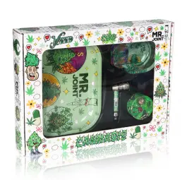 Zestaw Mr. Joint to konkretna opcja dla tych, którzy cenią styl i funkcjonalność. W środku znajdziesz cztery mocne akcesoria – metalowy młynek, solidną popielniczkę w kształcie czaszki, metalową lufkę i klasyczną tackę do skręcania. Całość utrzymana w spójnym, zielonym stylu z grafikami Mr. Jointa, co od razu przyciąga oko. Nie ma tu miejsca na przypadek – każdy element pasuje do reszty i razem tworzą kozacki komplet na prezent albo do własnego chillroomu.