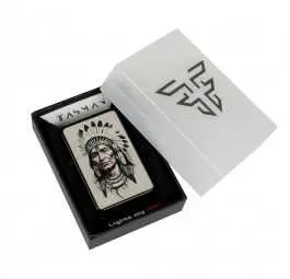 Zapalniczka Tasman „Indianin” to wyjątkowy model z kolekcji inspirowanej kulturą i duchowością rdzennych ludów Ameryki. Jej projekt przedstawia dostojny portret wodza Indian, którego twarz emanuje spokojem, mądrością i siłą. To nie tylko praktyczny gadżet, lecz także nawiązanie do tradycji, honoru i więzi z naturą.