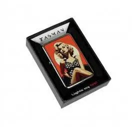 Zapalniczka Tasman „Sexy Lady” to klasyka w stylu vintage, która łączy elegancję z odrobiną buntowniczego charakteru. Na jej obudowie widnieje stylizowana grafika kobiety w duchu pin-up, siedzącej z pewnością siebie i uśmiechem, który mówi więcej niż słowa. To zapalniczka, która nie tylko rozpala ogień, ale też rozbudza wspomnienia epoki stylu, wolności i rock’n’rolla.
