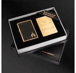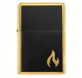 Złote ramki i matowa, czarna powierzchnia tworzą doskonałą równowagę między subtelnością a luksusem. Grawerowany płomień w dolnej części dodaje jej symbolicznego znaczenia – to motyw kojarzący się z siłą życia, namiętnością i determinacją. Zapalniczka prezentuje się niezwykle szlachetnie zarówno w dłoni, jak i w ekskluzywnym pudełku z kolekcji Brass Collection.